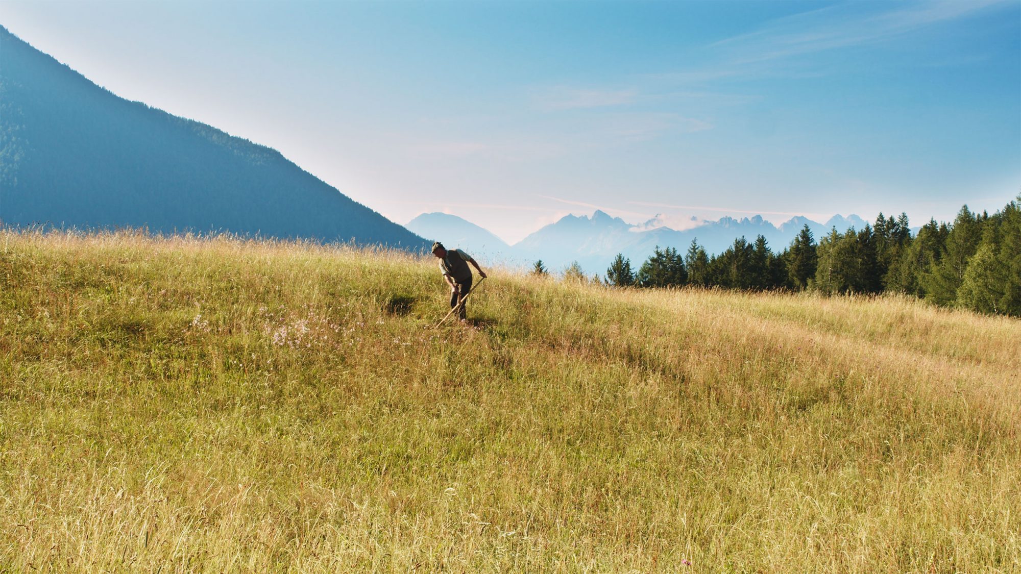 Die rhythmischen Bewegungen der Sense wurden hoch oben auf den schönsten Bergmähdern um Seefeld aufgenommen. Dort, wo der Wind sanft durch die Gräser streicht und unzählige Alpenkräuter auf steilen Hängen wachsen, verrichtet der Almbauer seine Arbeit. Ein schweißtreibendes und meditatives Tagwerk, das mit kristallklarer Bergluft und beispiellosem Panorama belohnt. Wer die Berge an seinem Arbeitsplatz vermisst, kann dem rhythmischen Takt der Sense lauschen und sich in idyllische Alpenwelten träumen.